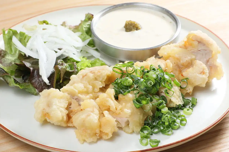 宮崎名物のチキン南蛮は、ジューシーな鶏肉にたっぷりのタルタルソースをのせた一品。